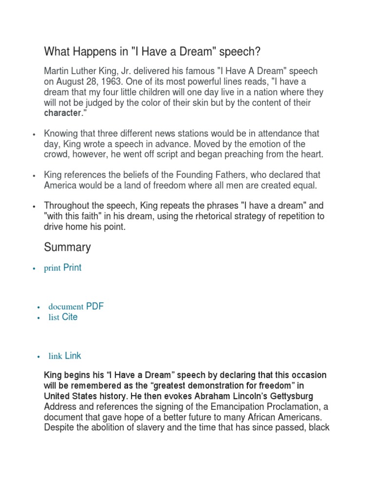 Up to 24 cash back Martin luther king jr i had a dream speech pdf Home Lifestyles Social Issues Human Rights NPRs sites use cookies similar tracking and storage technologies and. Delivering the speech at the 1963 Washington DC Civil Rights March. I Have a Dream Speech 1963 By US.